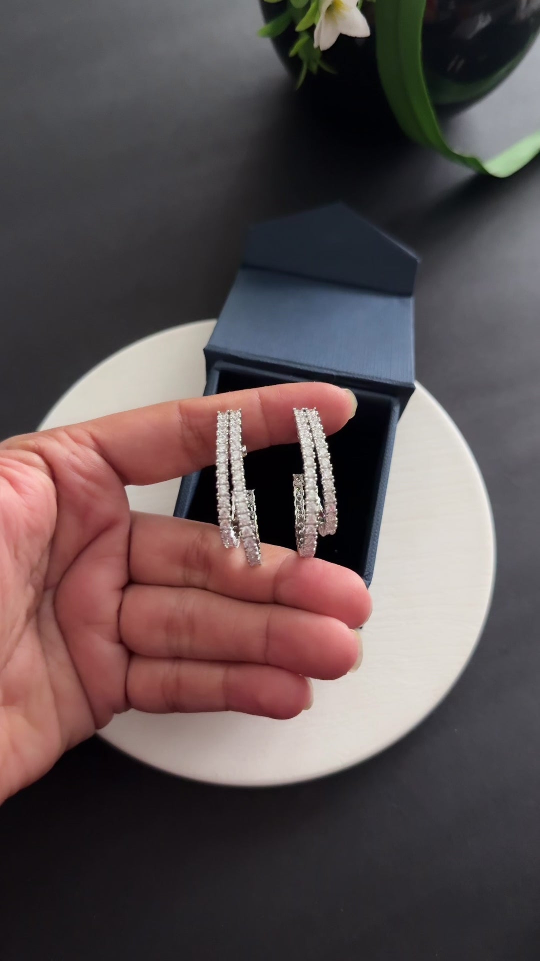 Our DAZZLE doublet hoops are made in silver plating , They are love and approved by Actress Disha Parmar