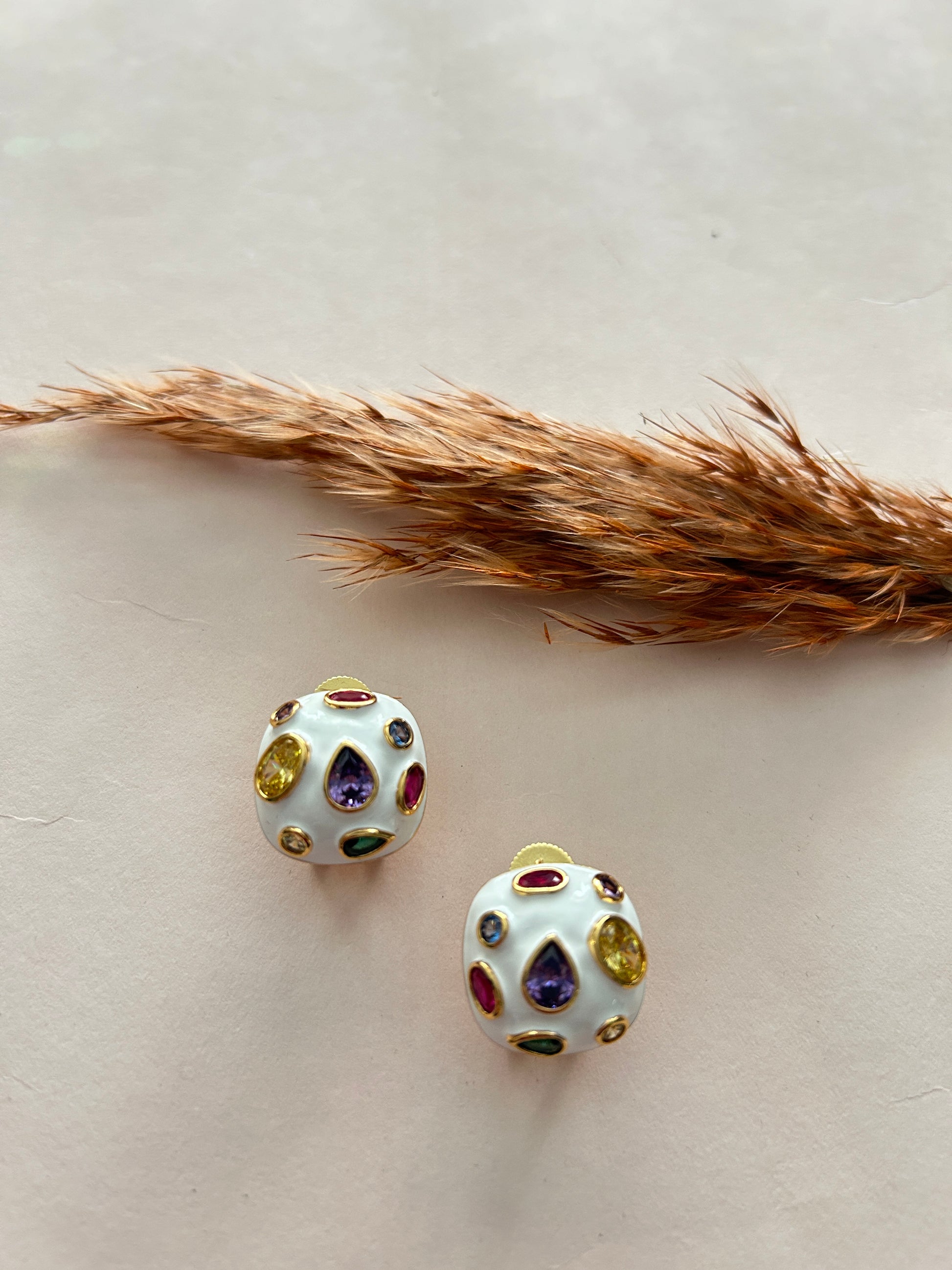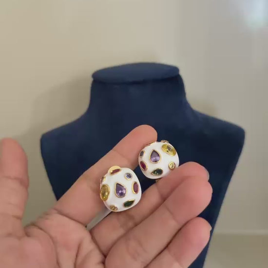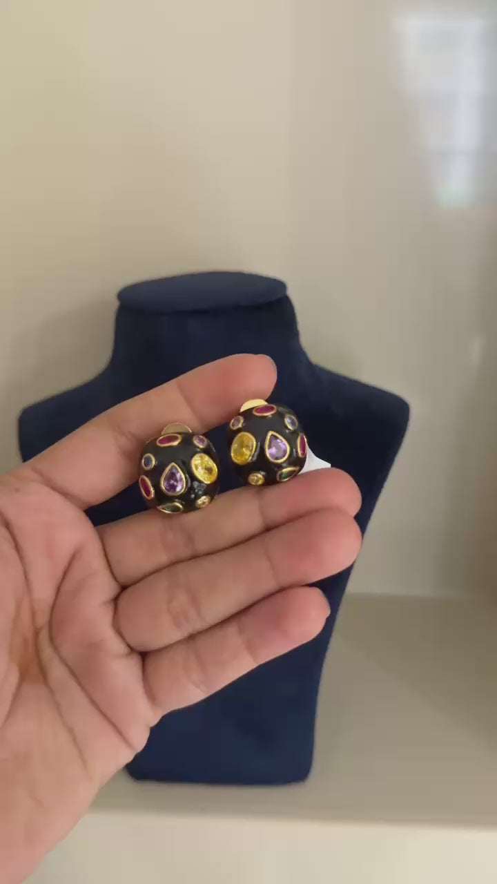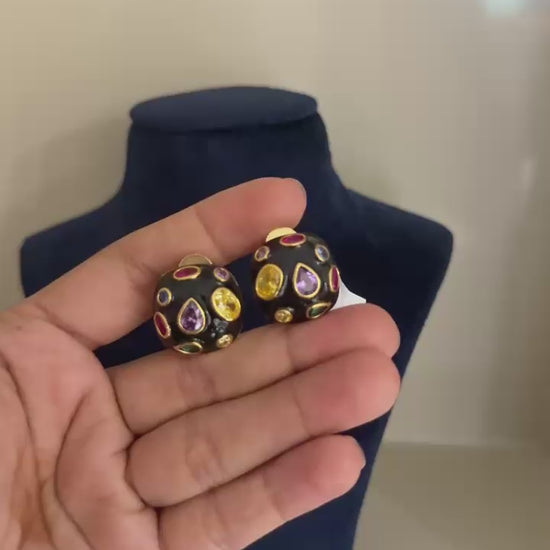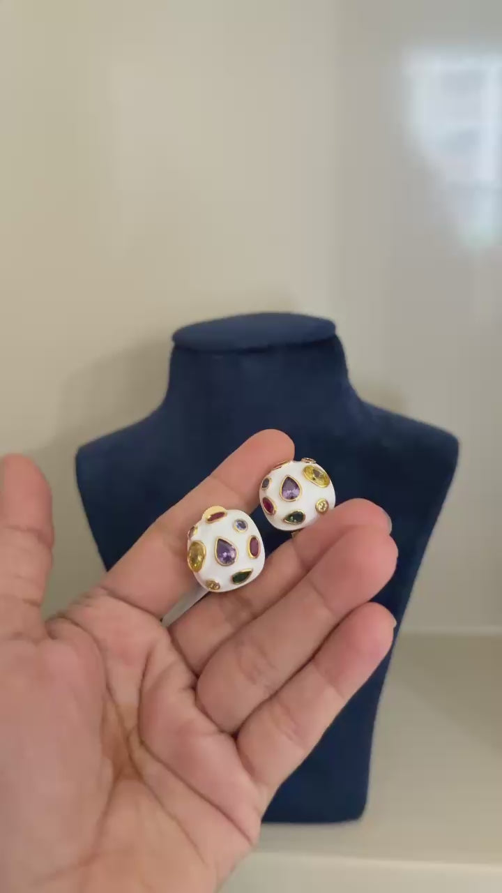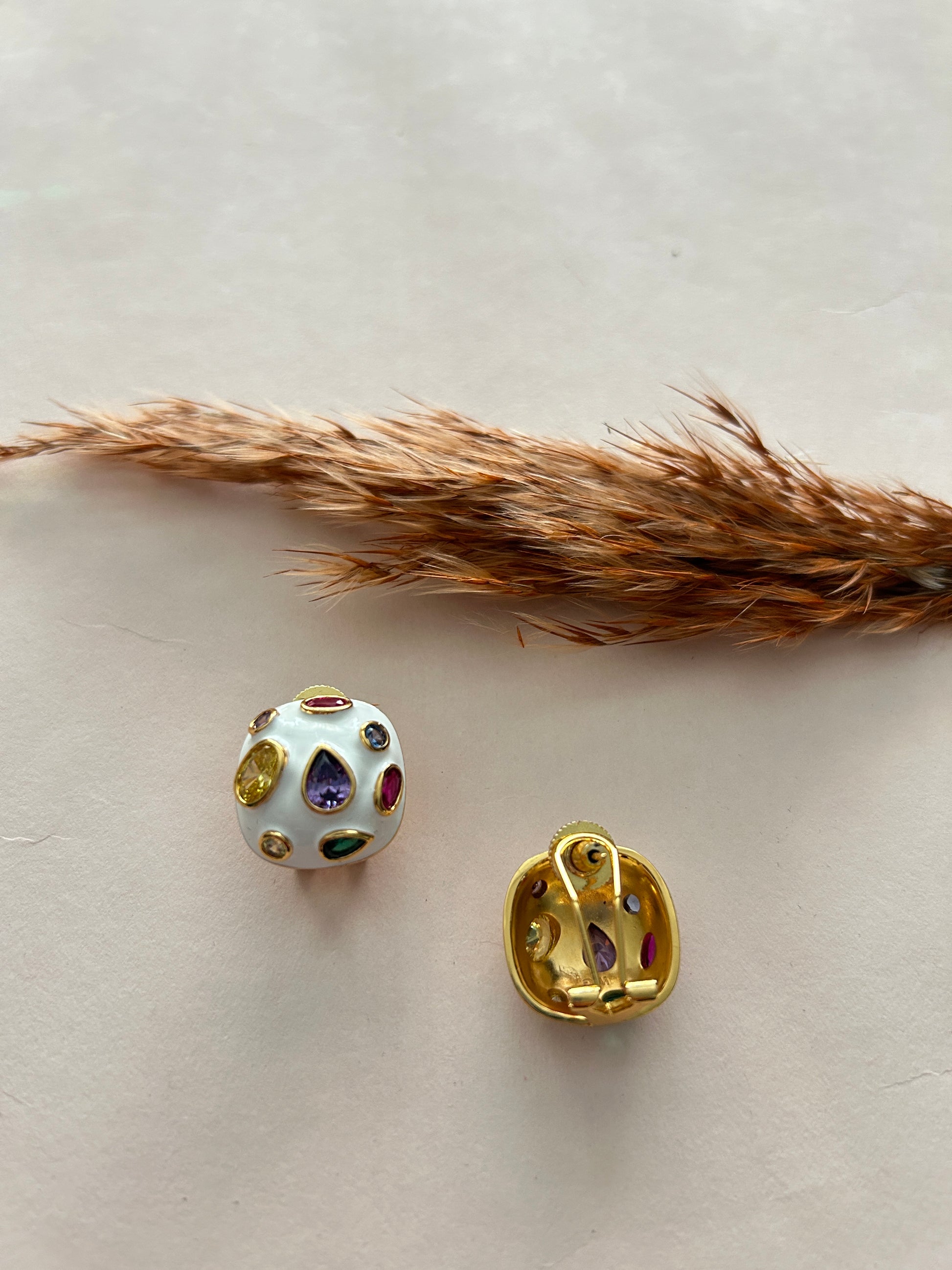 The medium sized coloured studs are available in 2 colors , black and white and comes with a clip at back .